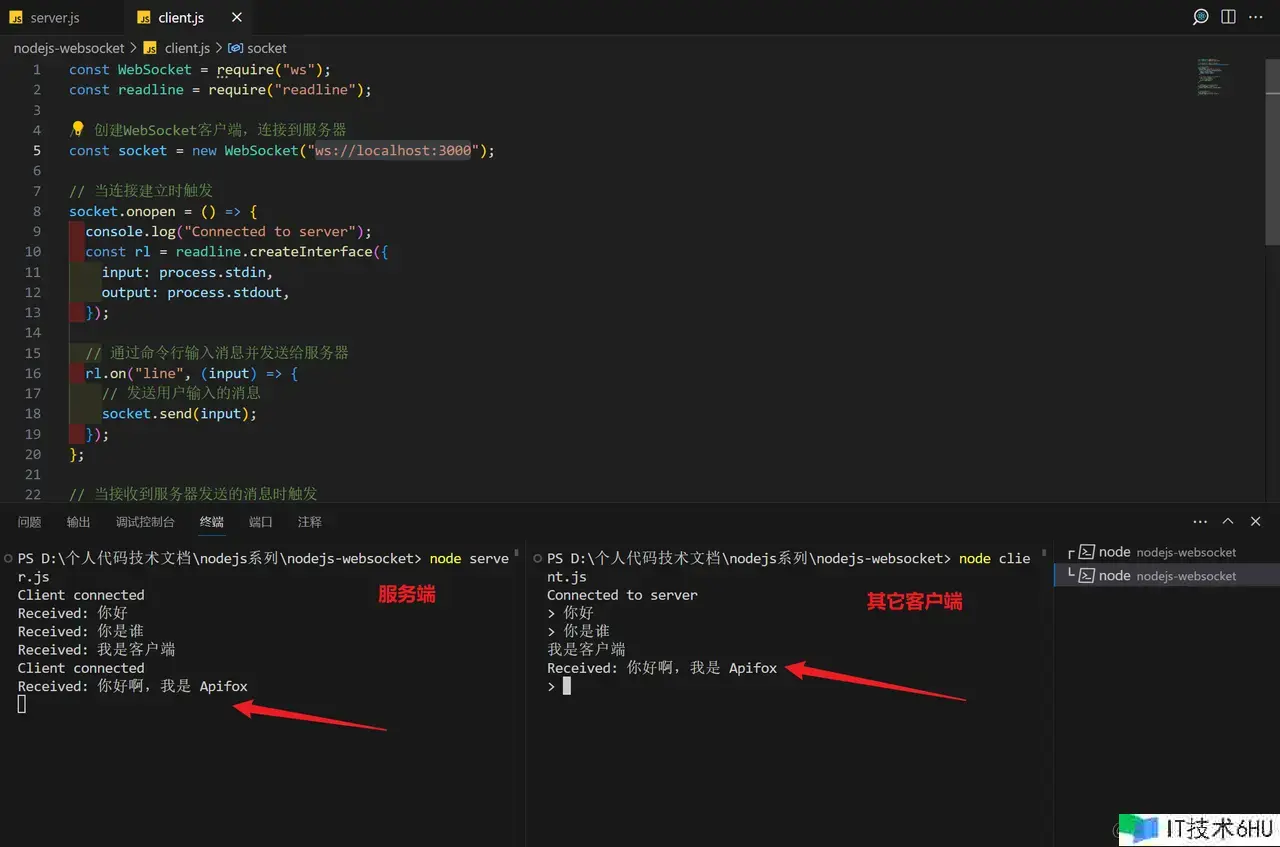 Node.js写的WebSocket服务端和客户端应该可以收到发送的音讯。