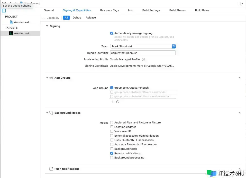 - 保证 Push Notification 功用存在于 capabilities 列表中。