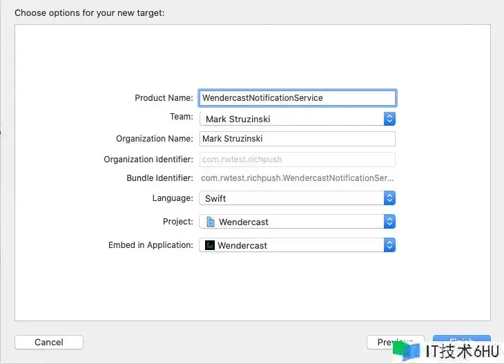 将扩展命名为 WendercastNotificationService。字段应该是这样的: