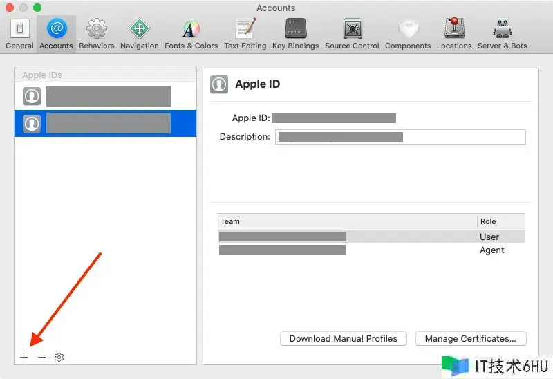 在 Xcode 中翻开发动项目。假如您还没有登录到您的开发团队,请进入偏好设置,挑选账户选项卡,然后运用+按钮登录。