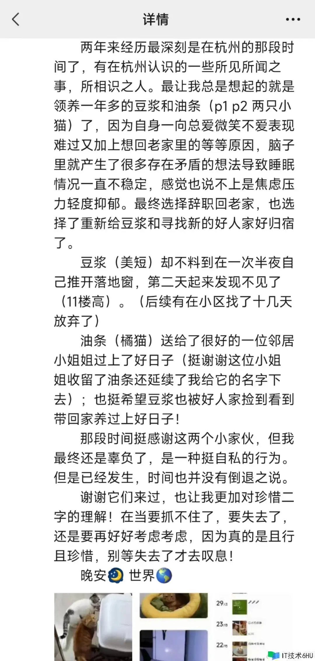 杭州的离开,意味着要方案 “豆浆”(美短猫咪)和 “油条”(橘猫猫咪)的去留。毕竟仍是挑选了让人领养… (陷入过自责,具体如图)