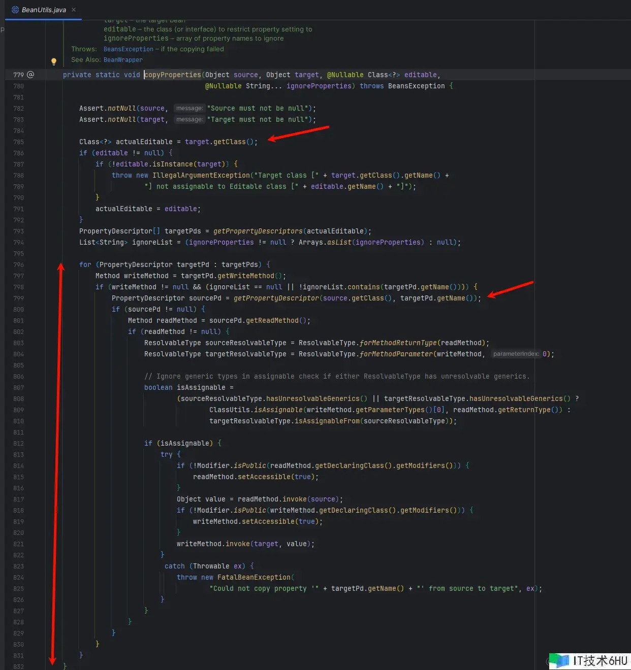我记住我刚工作的时分,我看见了他人经过BeanUtils来进行特点仿制,似乎发现了新大陆,这个真的好用,一两行代码就完事,直接把相同名称及类型的字段给赋值到新方针中,真的是太爱了。所以期间用到方针仿制我也基本都是用的这个东西类,但是后面个人在一些项目中发现了另一个办法,当时我也不知道是干嘛的,后面再看的时分发现也是特点仿制的效果,这个时分我或许就想了想这个mapstruct和BeanUtils有什么差异,下面我来贴一下源码图吧,咱们能直观的看出来二者的一个很大的差异: