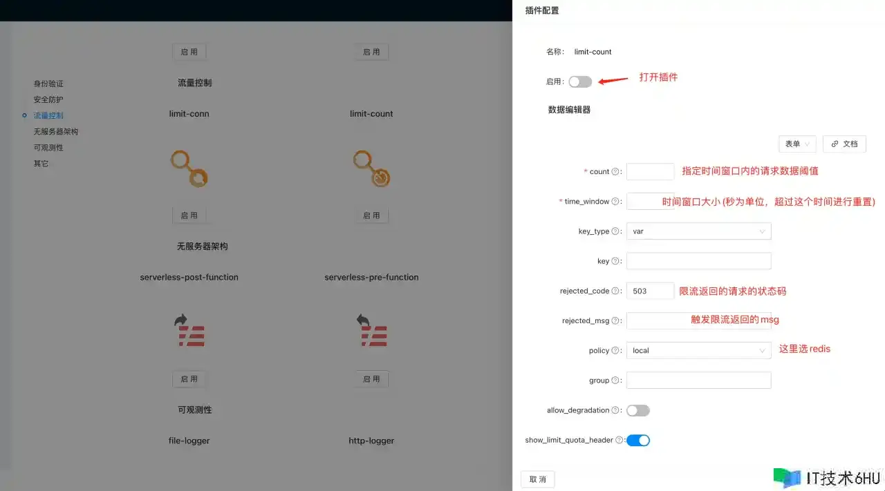 限流相关的功能首要在插件里边。所以咱们需求选用限流的插件