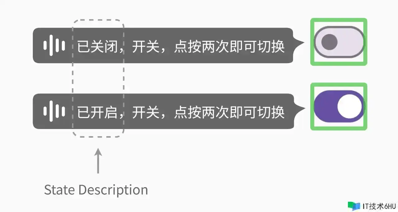 咱们能够运用公共语义特点 role 和 stateDescription 为元素设置别离设置语义人物和状况描绘: