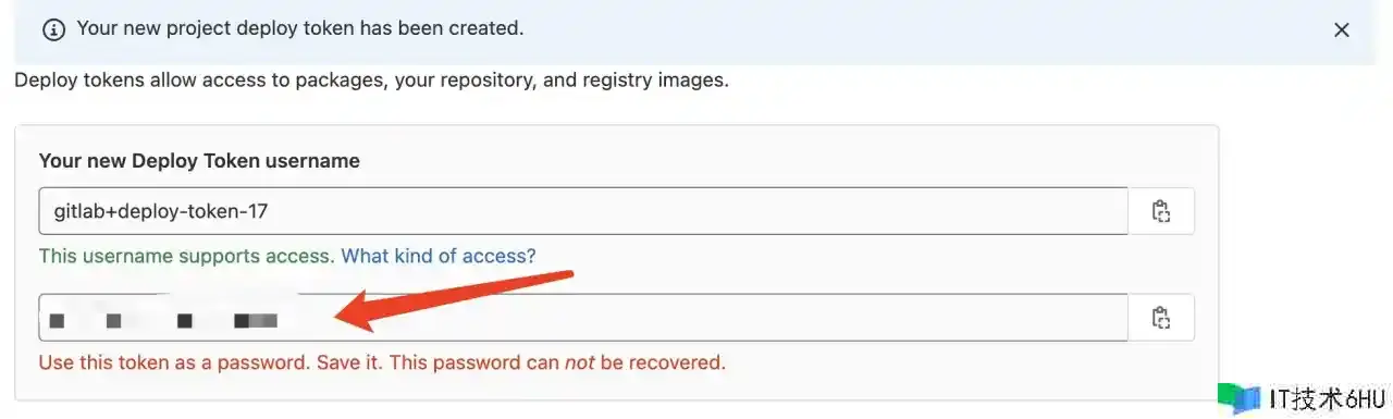 • 发布令牌:也便是咱们上边刚申请的Deploy tokens