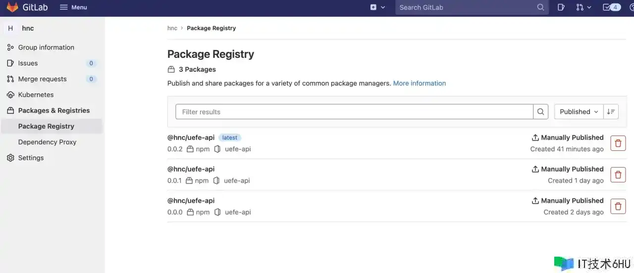 发布成功之后,群组hnc下的Packages & Registries就会有发布记录