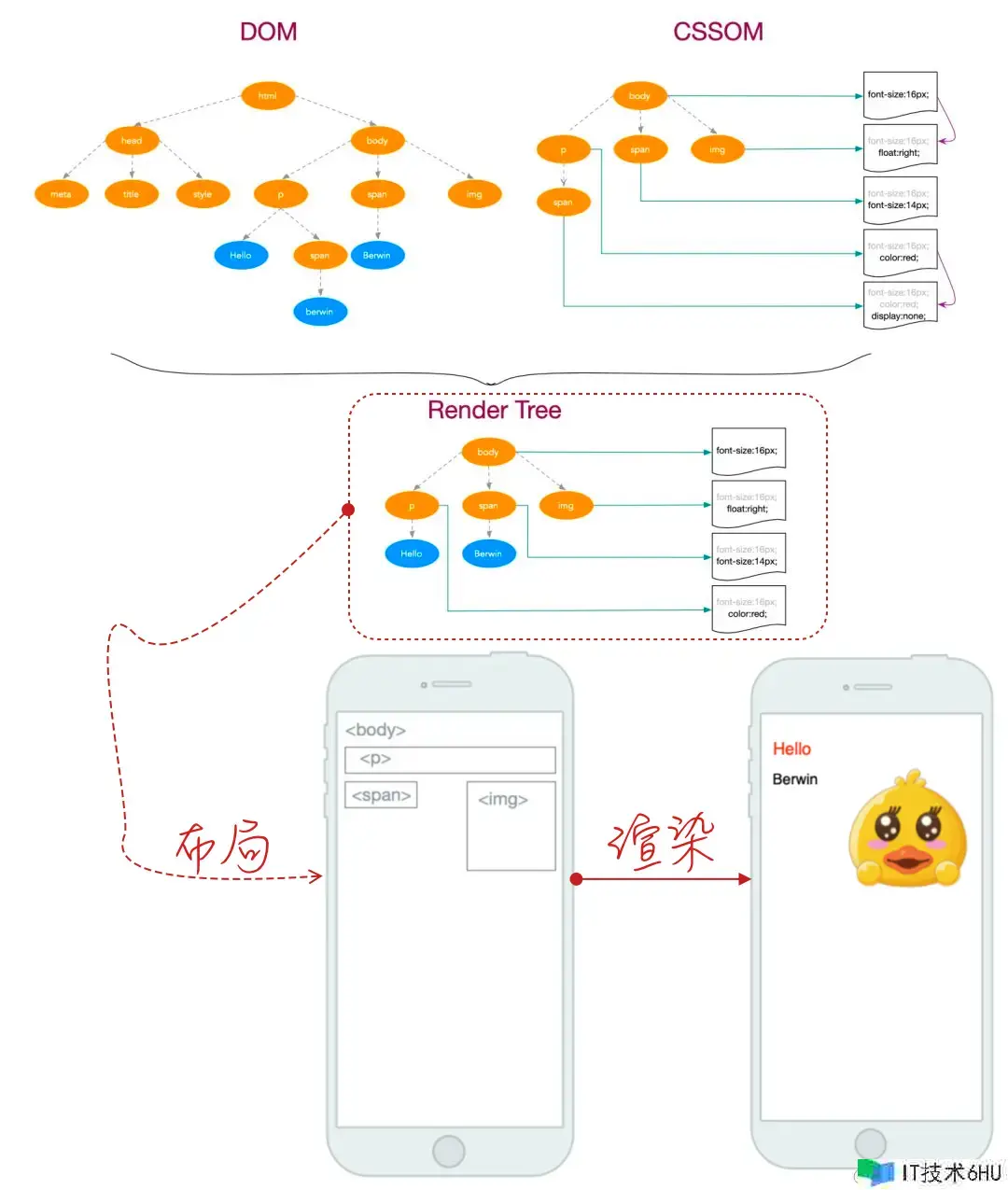 更多的人或许更易于承受 CSSOM 的概念。这儿额定提一下,正是 DOM 树和 CSSOM 树才构建成了一颗烘托树: