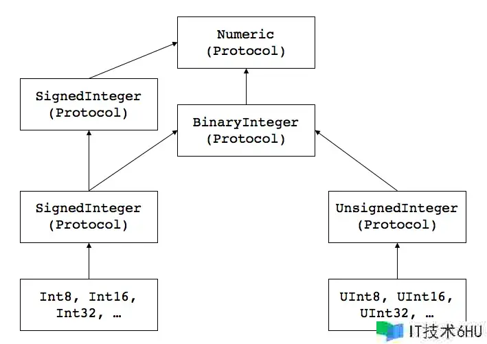 箭头表明遵循(有时称为选用)一个协议。尽管这张图没有显现整数类型符合的一切协议,但它让你了解作业是怎样组织的。
