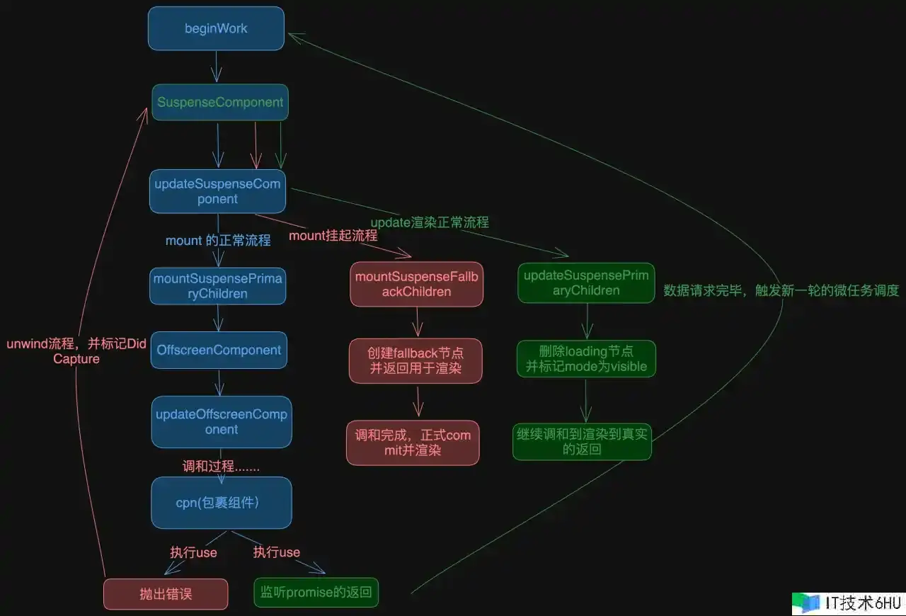 2. unwind到最近的suspense节点,走update挂起流程,展现loading的界面。