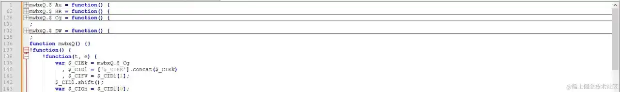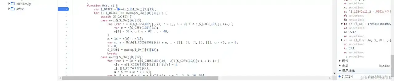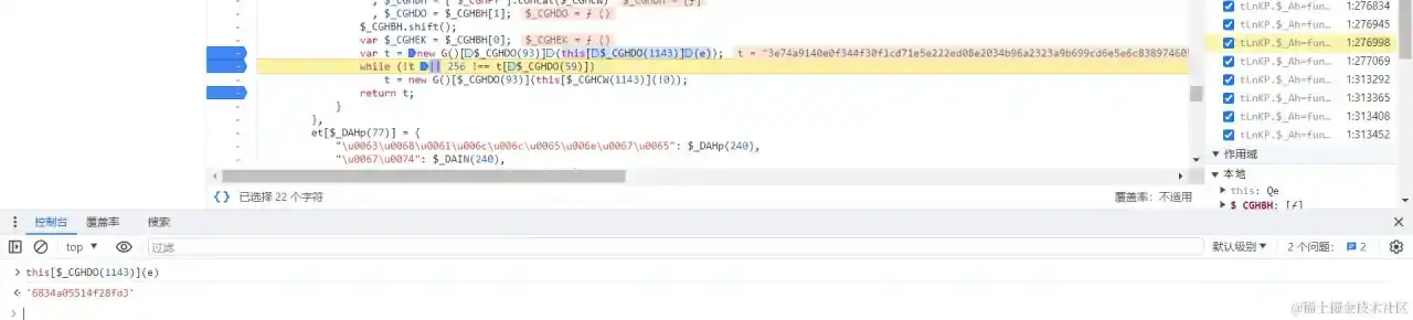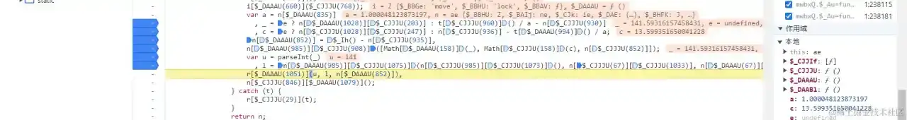 w 值便是 t[$_CFEHG(1160)],前面咱们发现 var t=this,然后经过 t[$_CFEHG(1191)](),咱们的 w 值就生成了。咱们进入这个函数之中,进入今后发现异常的了解,这不便是无感系列的 w 吗?