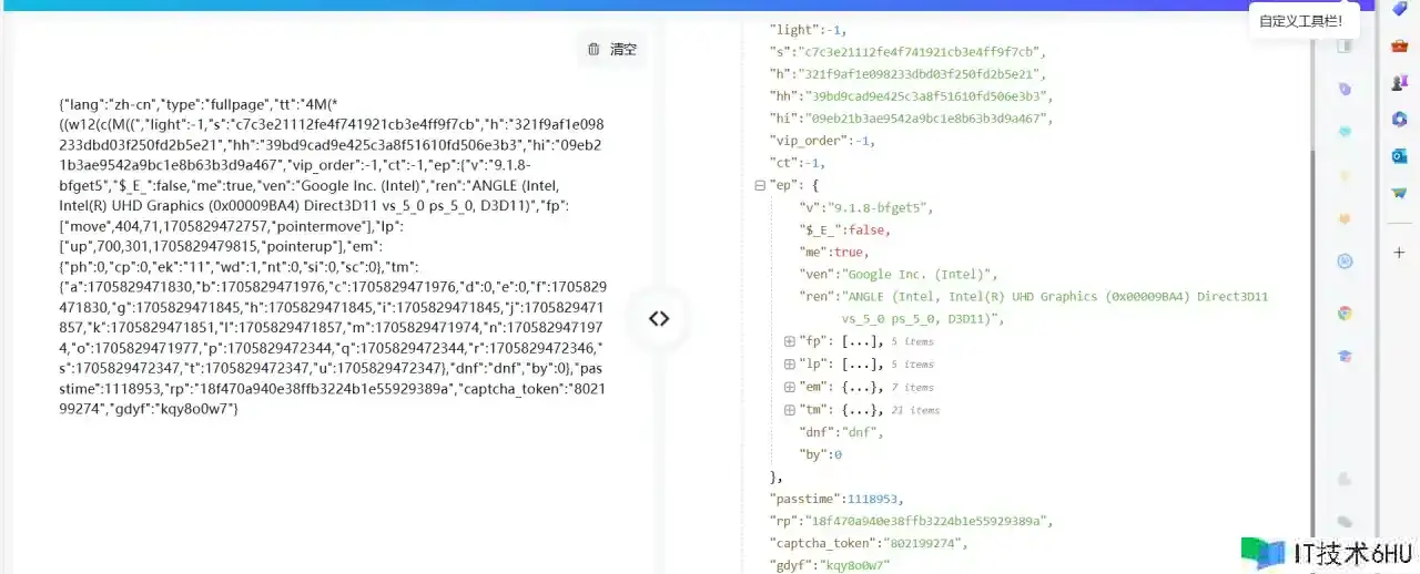 咱们简单修改一下代码,大约如下 w=R["encrypt"](r,key),没错这个 R 方法其实与第一个 w 中 i 生成方法一样。所以现在,咱们只需求处理 r 参数就能够完结第二个 w 的逆向。咱们看一下 r 参数包括那些,咱们仍旧运用 K 哥东西站进行解析: