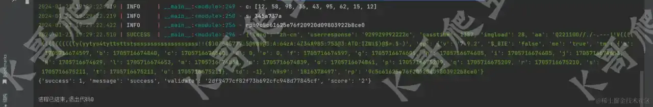 紧接着,咱们滑动完结拼图,得到验证结果 validate 参数,这个参数便是后续登录的令牌,在后续操作的恳求中会用到: