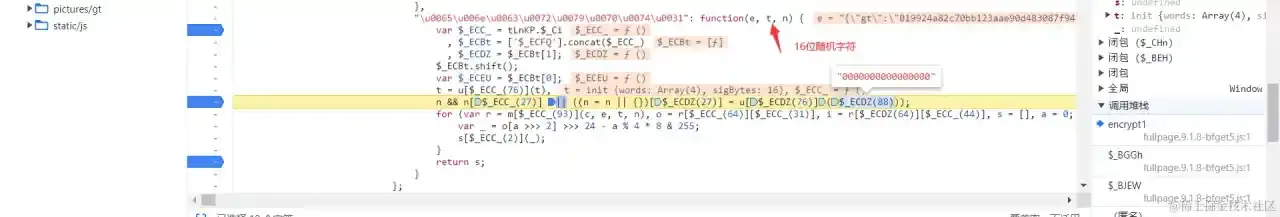 接下来是 o 值,加密方法为 $_BEH()[$_CEFCV(1127)],传入参数为 t[$_CEFDY(1143)]() 和 fe[$_CEFDY(431)](t[$_CEFCV(370)])。咱们发现 t[$_CEFDY(1143)]() 为 rsa 加密的 key,t[$_CEFDY(1143)]() 和 fe[$_CEFDY(431)](t[$_CEFCV(370)]) 为明文参数。进入加密方法,打断点调试,咱们发现是 AES 加密,一起初始向量是 0000000000000000: