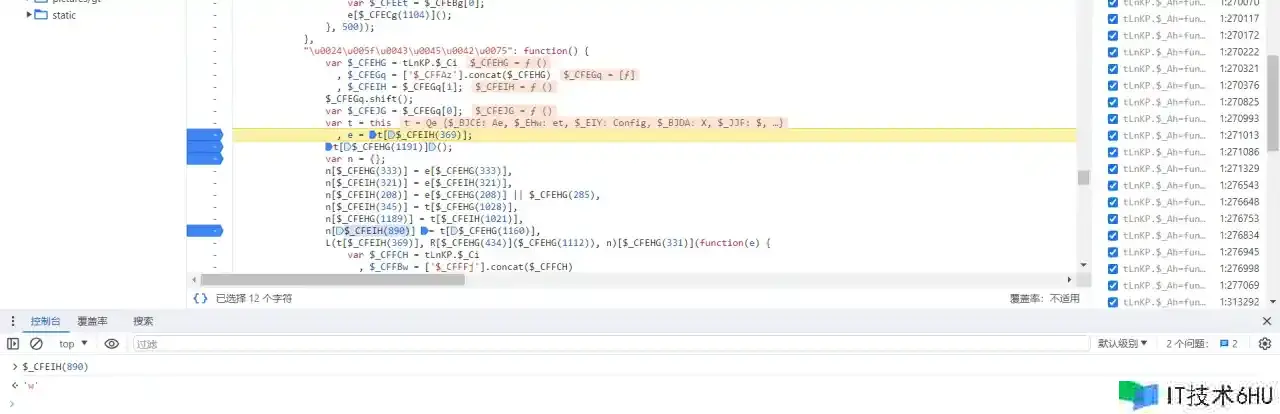 至此咱们 o 就剖析结束,总算只剩下一个 i 值,接下来咱们剖析一下 i 值,咱们进入 R[$_CEFDY(1197)] 函 数,发现 i 值为 t 中的俩个 value 值相加,t 的界说在断点上方: