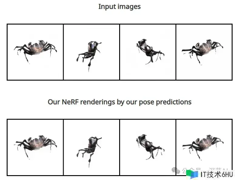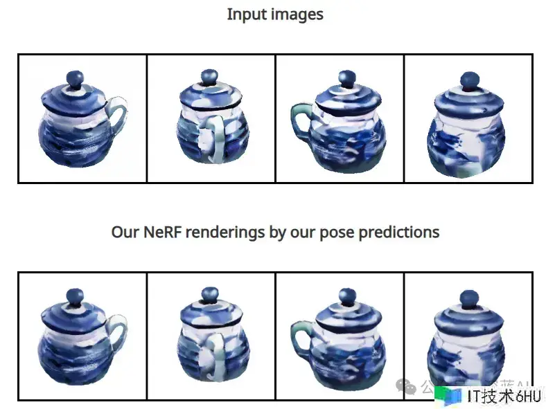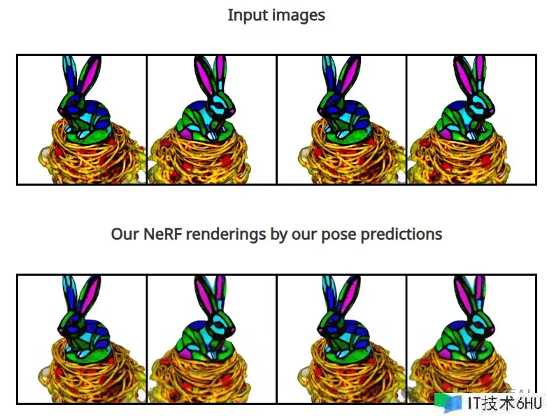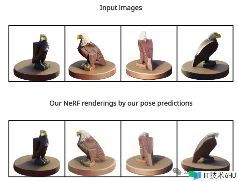 本研究的大体思路是:给定没有位姿的稀少输入图画,运用一个大参数的transformer来重建一个三平面NeRF,一起估量输入视图相对于参阅视图的相对摄像机位姿。在练习进程中,运用GT位姿监督新角度的烘托loss。对于相机配准,该作业并不是直接回归猜测相机位姿,而是将图画token以点云(右上)的办法映射到一个粗糙的三维几许图形,在那里从每个补丁中心对应的每个补丁符号猜测一个三维点,然后运用可微PnP求解器从这些猜测的3D-2D对应中取得相机位姿。