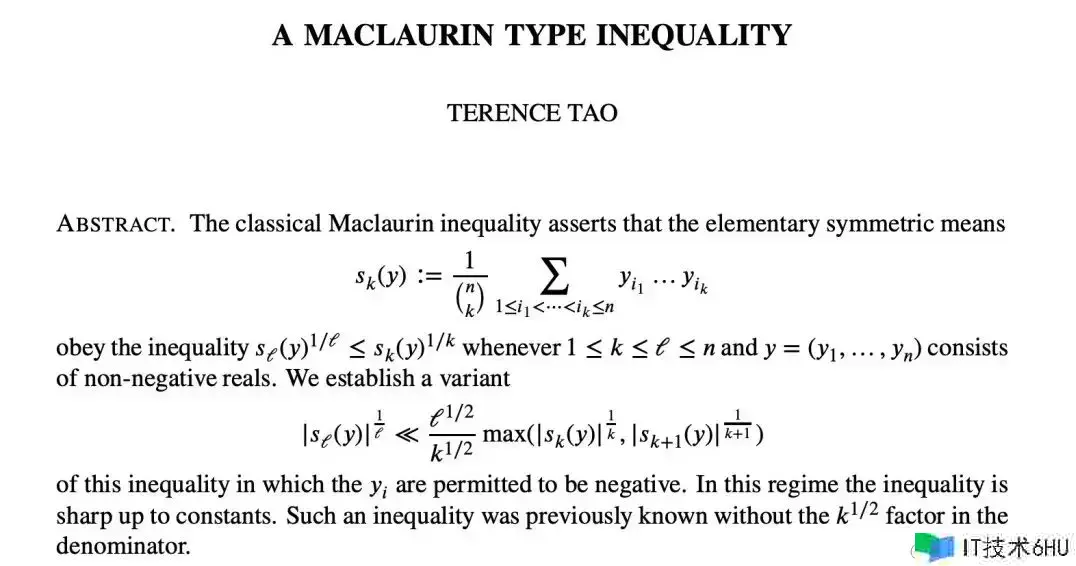 形式化证明本质上是一种计算机程序,但与 C++ 或 Python 中的传统程序不同,证明的正确性能够用证明助手(比如 Lean 言语)来验证。举例来说,陶哲轩在论文《A MACLAURIN TYPE INEOUALITY》中给出的证明只有不到一页,但形式化证明使用了 200 行 Lean 言语。