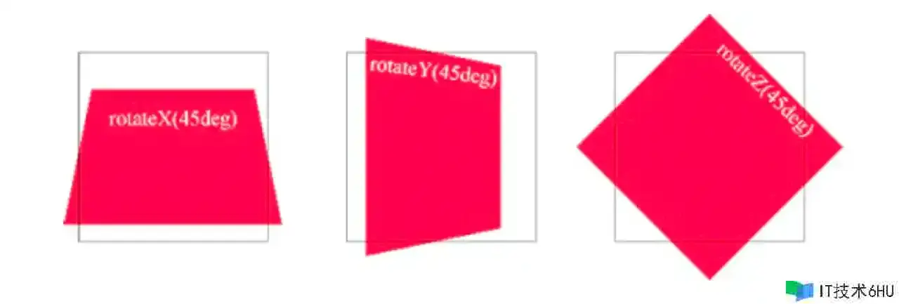 与此不同,CSS 旋转函数中 rotateX()、rotateY()和 rotateZ()均归于 3D 改换。