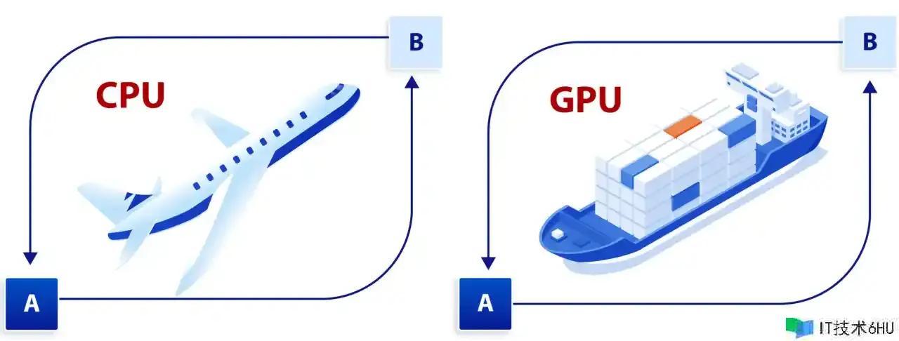 用一个形象的比喻来解说。CPU 就像是一架高速飞机,而 GPU 则适当于一队货柜船。它们的使命是将很多货品从 A 位置敏捷运送到 B 位置。虽然 CPU(飞机)速度十分快,但每次只能带着少数的货品,需求多次往复才干完结使命。比较之下,GPU(货柜船)虽然单次履行速度相对较慢,但经过协同作业,每艘都能一起带着一部分货品,终究以团体的力气高效完结运输使命。