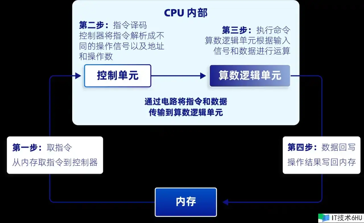 为了满意处理各种不同数据的强壮通用功用,CPU 的内部结构规划十分杂乱。CPU 由多个中心组成,每个中心又包含算术逻辑单元、操控单元和高速缓存等组件,而且能够独登时履行使命。至今停止,所有的 CPU 都遵从冯诺依曼体系结构的根本作业流程:取指令,指令译码,履行指令,数据回写,然后再取下一个指令、译码、履行、回写,重复进行直到程序完毕。经过这种作业流程,CPU 能够有效地履行程序,并操控整个系统的运转。