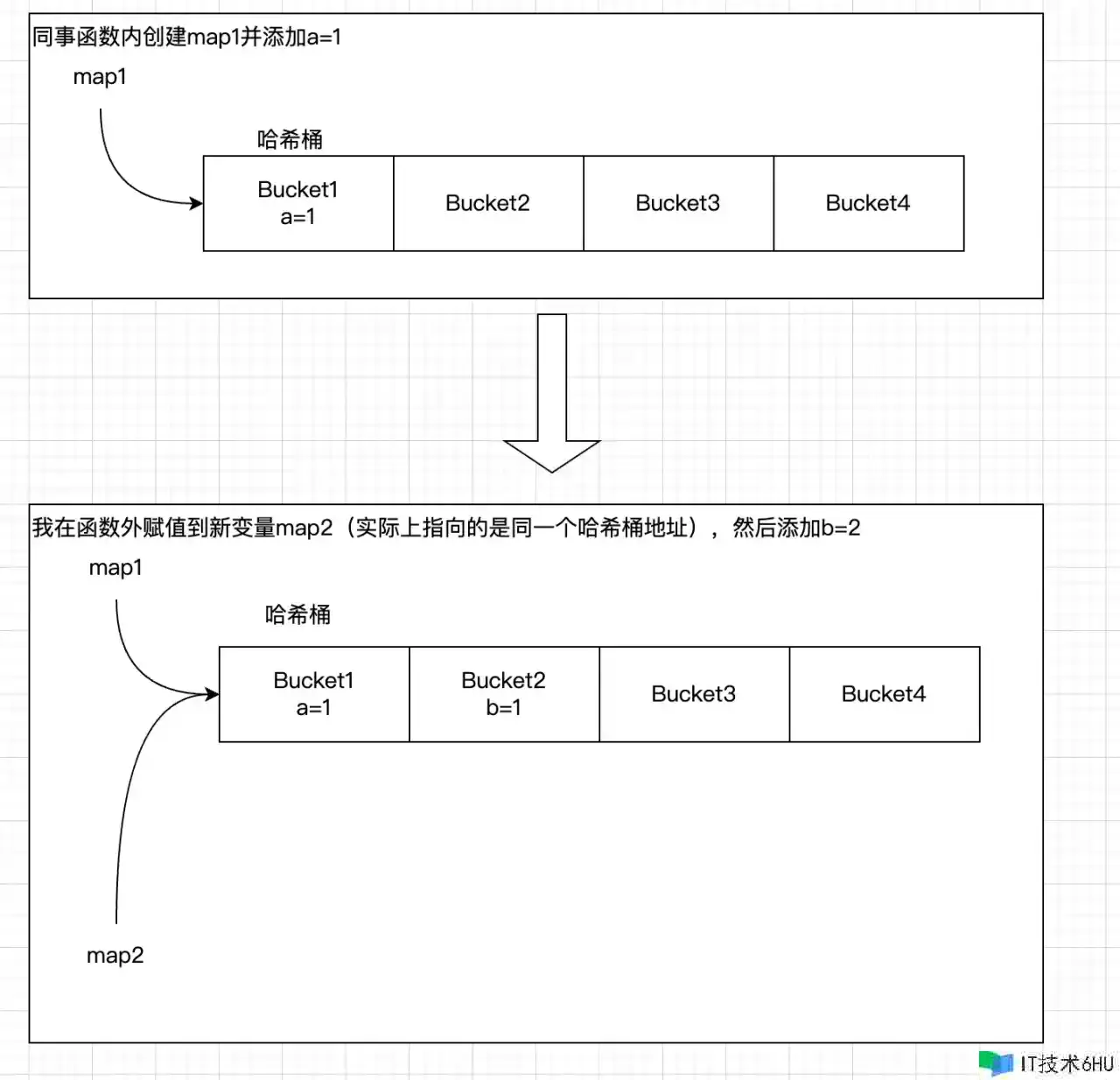 在Go语言中,map是引证类型,当将一个map赋值给另一个变量时,实际上是将它们指向同一个底层的map目标。因而,当你修正其间一个变量的map时,另一个变量也会受到影响。