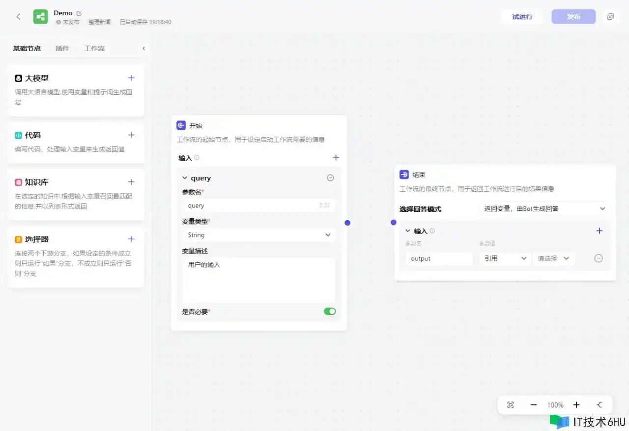 作业流的调用与插件一样,直接在提示词中编写调用作业流“Demo”收拾今日热点新闻,并输出就可以啦