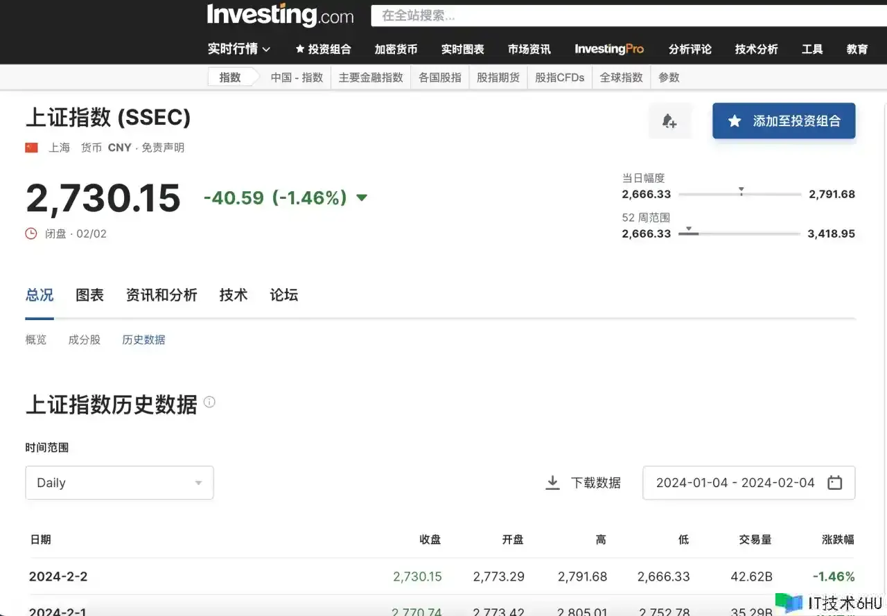0 2024-2-2 2,730.15 2,773.29 2,791.68 2,666.33 42.62B -1.46%