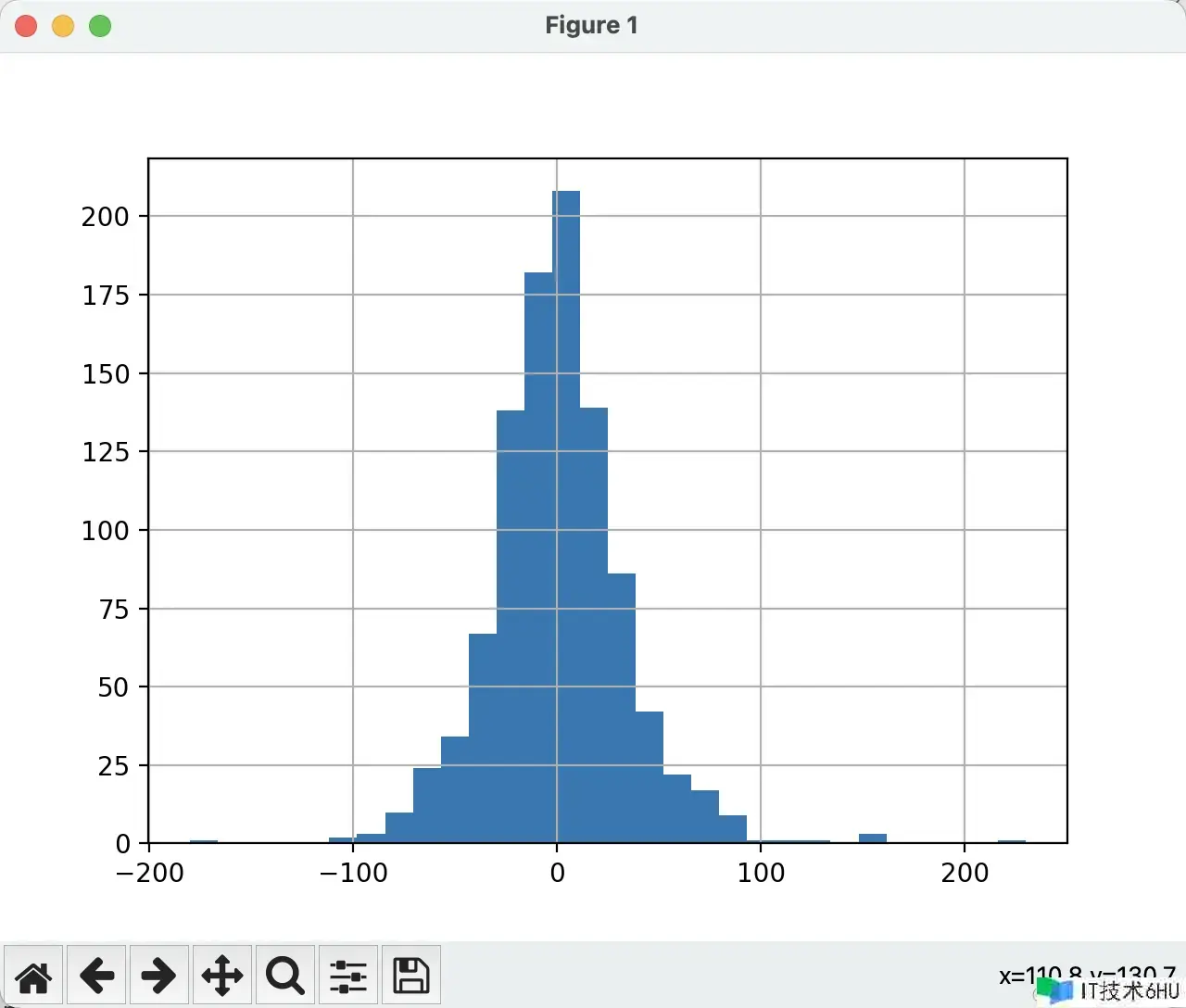 但如果咱们核算上证历史数据中前后时刻点开盘价的差值(今天和昨日开盘价的差值),并制作差值的直方图,就会得到一个正态散布。