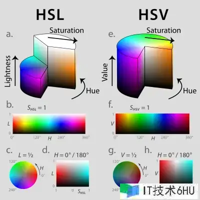 下面整理了 HLS 和 HSV 颜色空间的区别:
