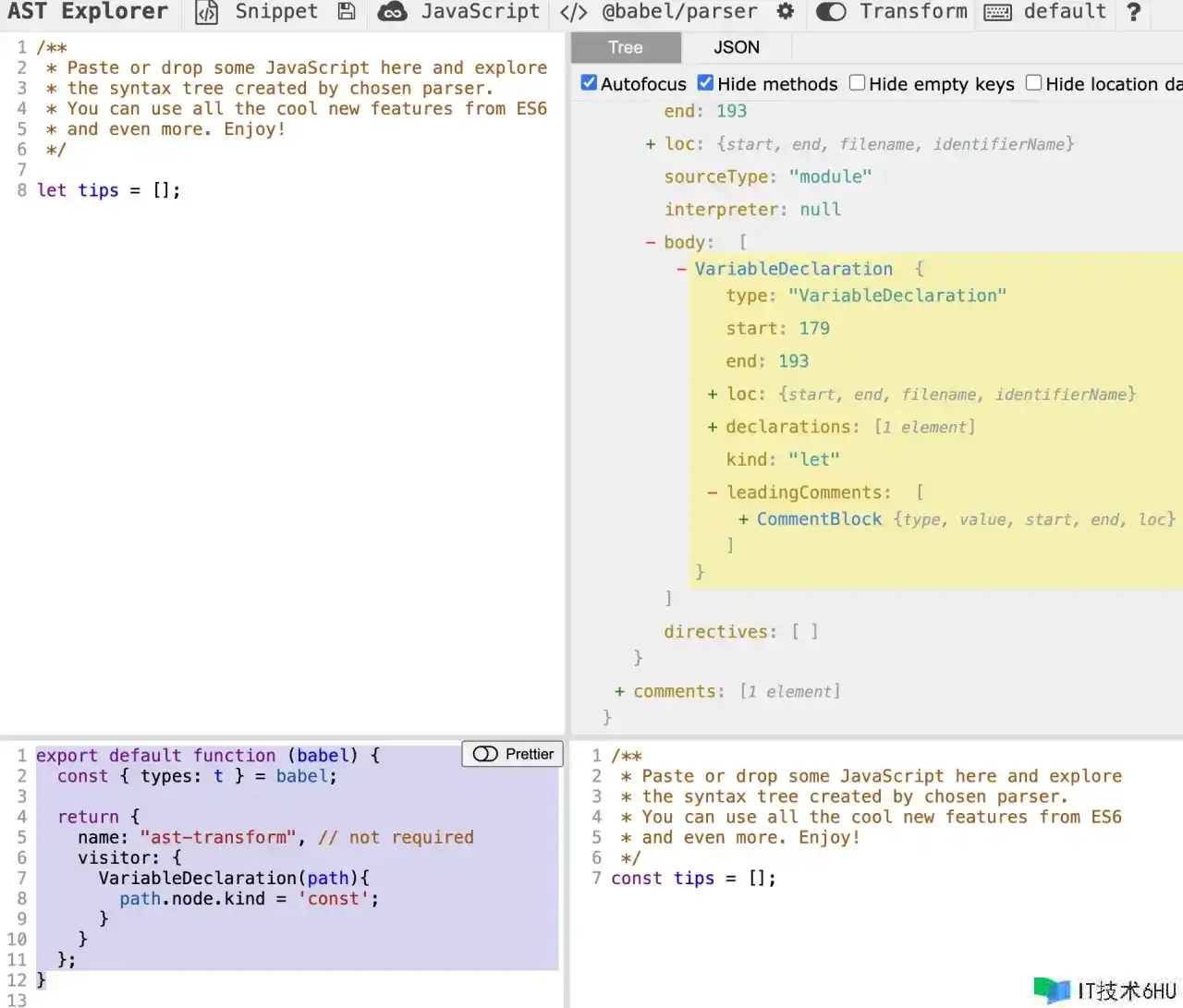 - 那我怎么知道let归于哪个类型的节点?AST可视化网站不就派上用场了嘛。你把上面的代码放到这个可视化网站里看一下不就知道啦。