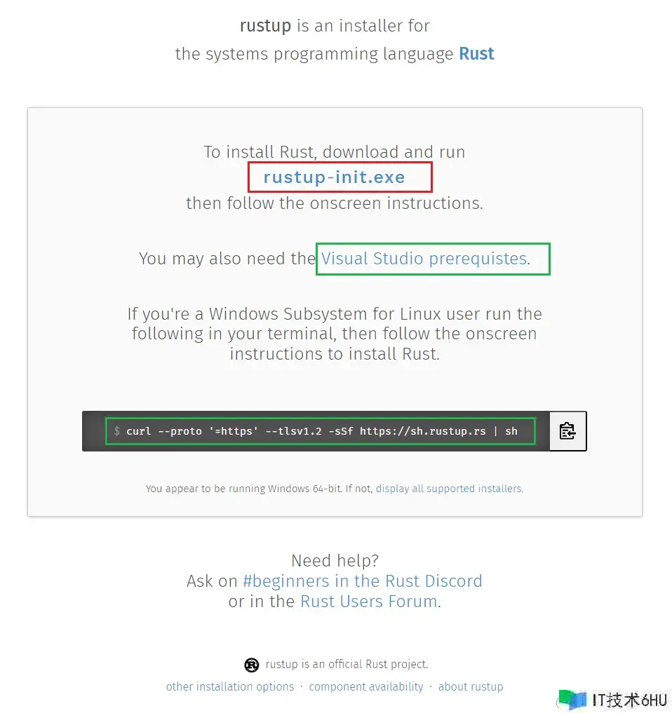 Rustup是Rust社区供给的东西链办理东西,运用Rustup来装置和办理东西链,而且能够随时切换东西链的版别。拜访地址: rustup.rs/