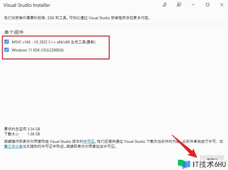 msvc与windows sdk有必要勾选,然后点击“装置”