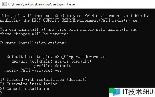 关掉vs,回到cmd持续装置rust,挑选第一项默许装置即可。