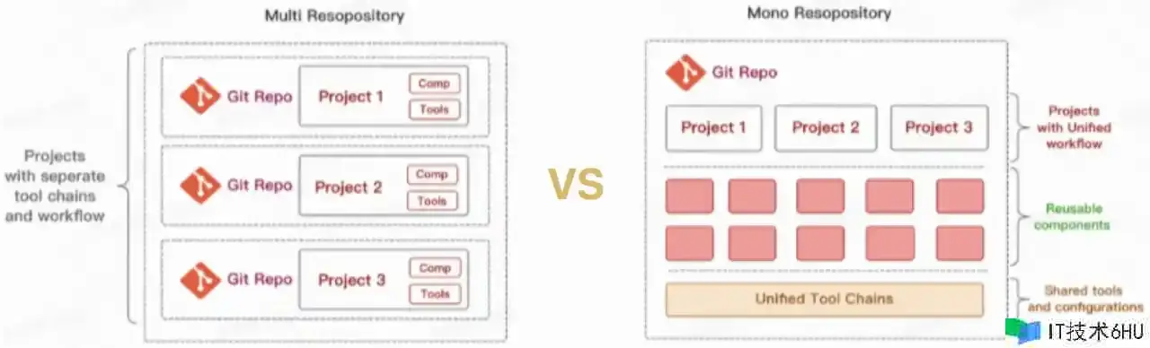 每个库房可以有其独立的构建、测验和布置装备,这答应项目依据自己的特定需求定制化工程装备,供给了高度的灵活性。 ✅ 相关于 MonoRepo,单个项目的装备一般更简略、更直接,由于它只需求关注本身的需求,而不是有必要考虑到与其他项目的协作和兼容性。 ❌跟着库房数量的增加,重复的装备和东西链设置或许导致保护本钱增加。每个项目或许需求独自保护构建脚本、依靠办理文件、CI/CD 装备等 ❌在多库房环境中,不同项目之间的装备或许会呈现不一起,导致构建、测验和布置流程的差异,增加了团队成员之间协作的复杂性。 |