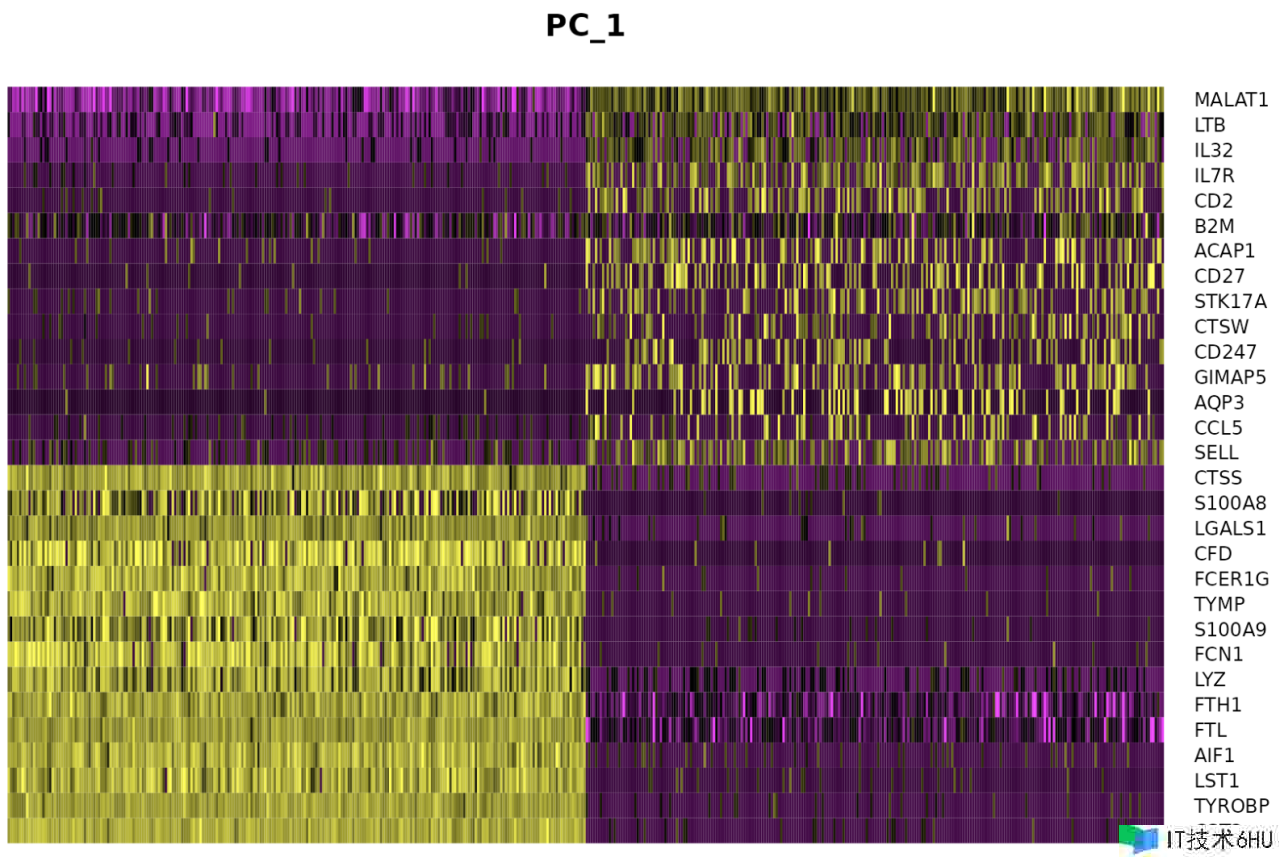 Seurat 提供了几种有用的办法来可视化界说 PCA 的单元格和特征,包含 VizDimReduction()、DimPlot() 和 DimHeatmap()