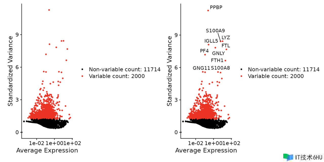 接下来,咱们计算数据会集表现出高细胞间差异的特征子集(即它们在某些细胞中高度表达,而在其他细胞中表达较低)。在下流剖析中重视这些基因有助于杰出单细胞数据会集的生物信号。