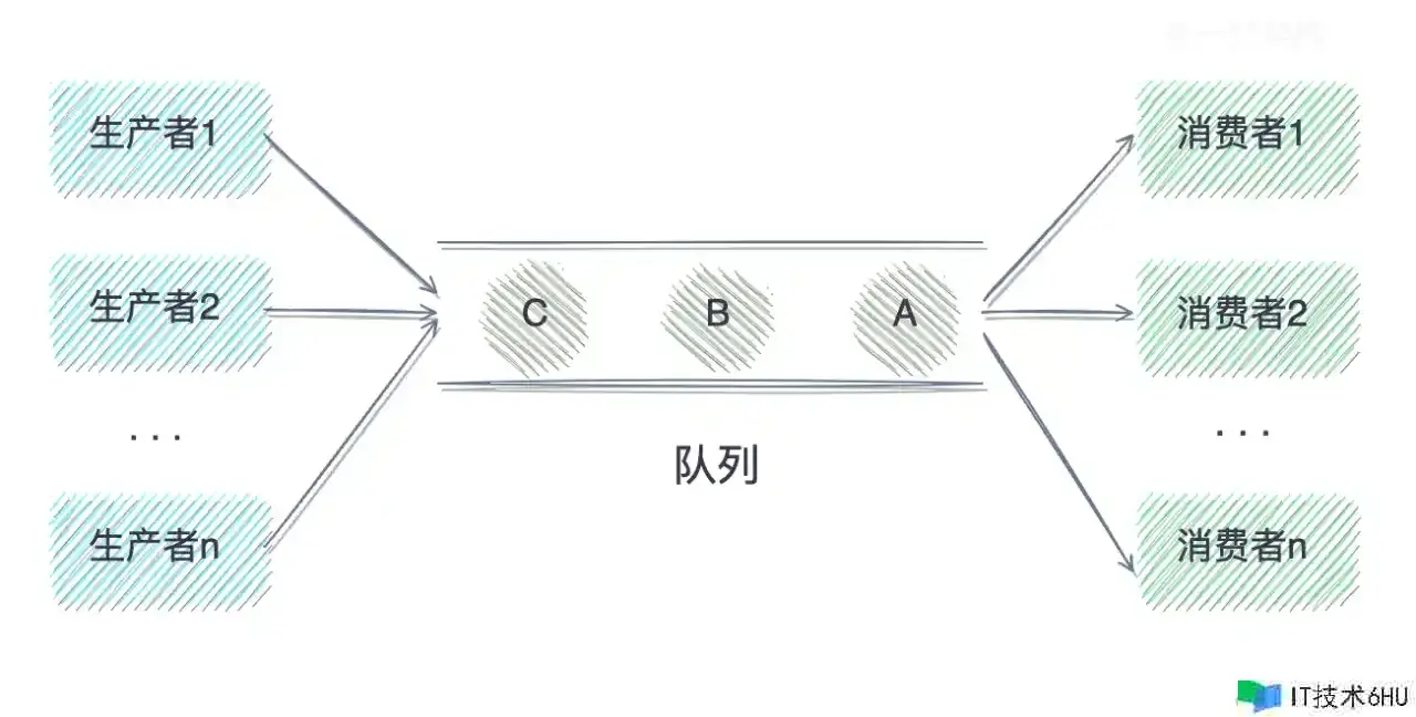 - 生产者与顾客解耦的场景,生产者把数据放到行列中,顾客从行列中取数据进行消费。两者进行解耦,不用感知对方的存在。