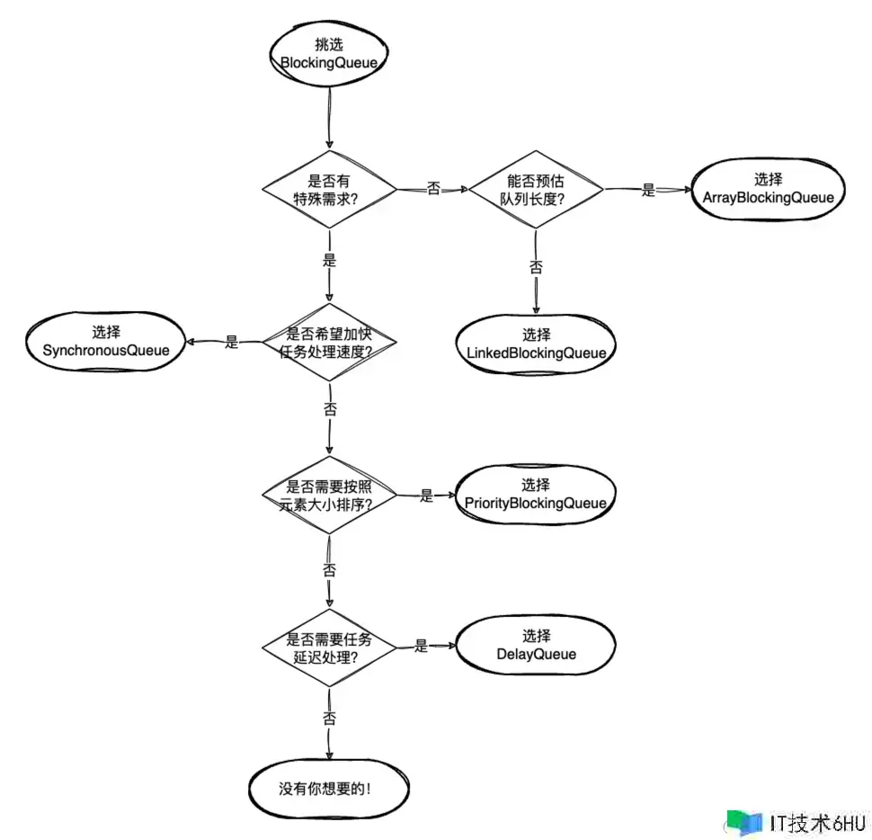 这5种堵塞行列的特性各不相同,在运用的时分该怎样选择呢?我做了一张图,供咱们参阅。