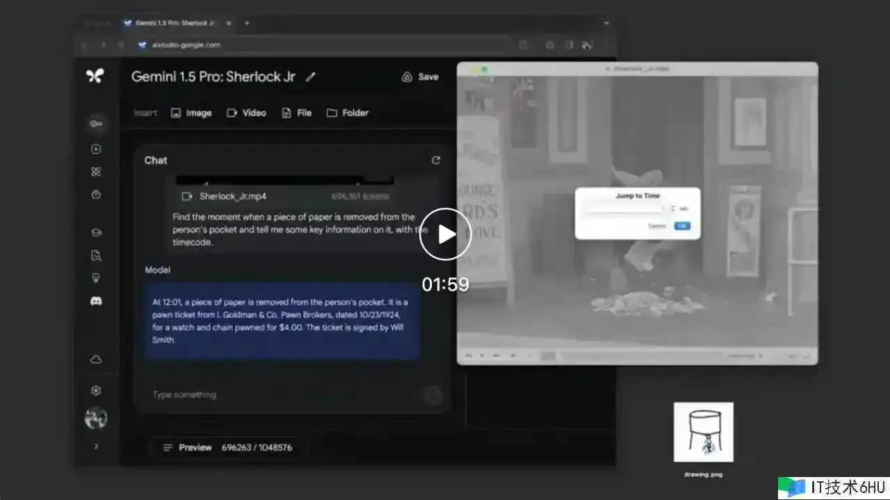 1.5 Pro 能够针对包括视频在内的不同形式执行高度复杂的了解和推理使命。例如,当给定一部 44 分钟的巴斯特・基顿无声电影时,该模型能够精确分析各种情节点和事件,甚至推理出电影中容易被疏忽的小细节。
