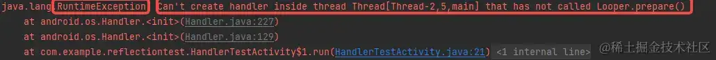 该反常提示你不能在没有调用过 Looper.prepare() 的线程中创立 Handler 目标,假如运转下述代码,运转就不会报错: