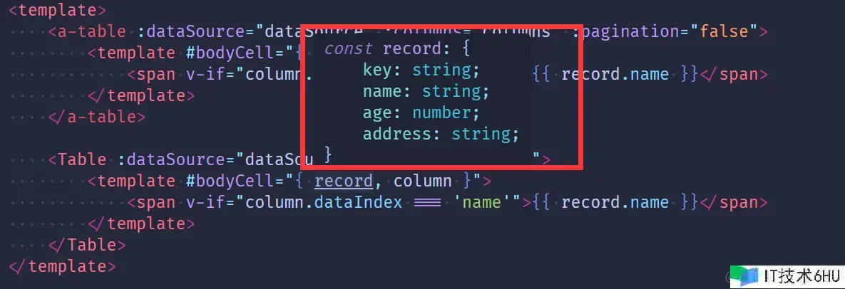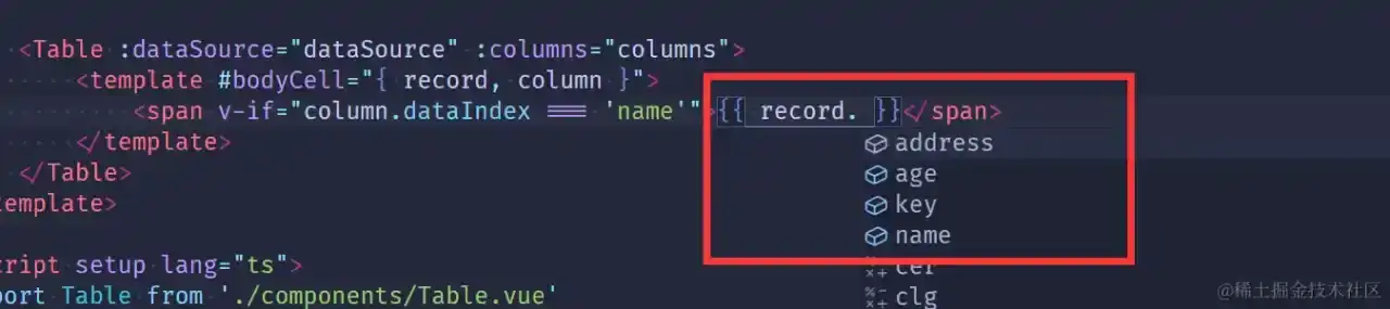常见的例子是,拿ant-design-vue的a-table来说,它需求传入两个prop,dataSource和columns,其中dataSource的特点便是不确定的。ant-design-vue对dataSource的类型界说是object[],以至于运用作用域插槽时,得不到比较好的类型提示。