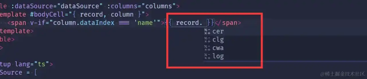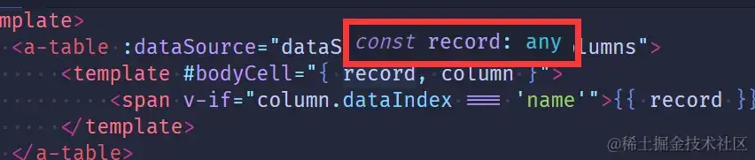 <span v-if="column.dataIndex === 'name'">{{ record }}</span>