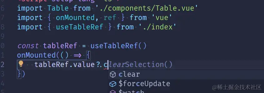 然后不再运用ref,改用这个useTableRef,则重新得到了组件的办法