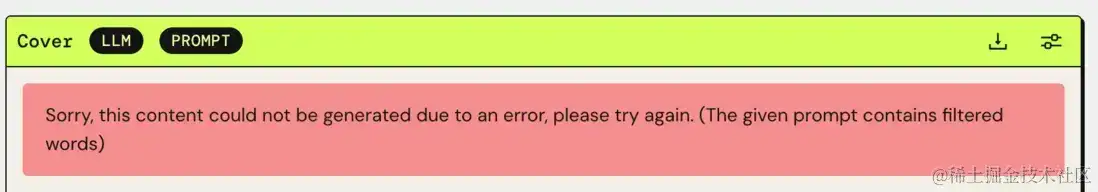 我在体会 PartyRock 的时候也发现了下面的提示,假如呈现不安全的单词,图片是不会生成的: