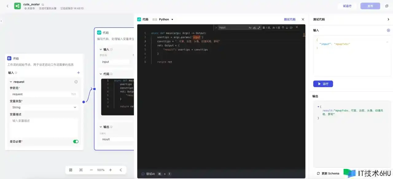 - 咱们能够新建代码块对参数进行处理,比如增加咱们自定义的内容,经过Output能够设置输出参数(要害是key,此处是rust)。这儿一定要进行测验,不然后面遇到问题会很麻烦!