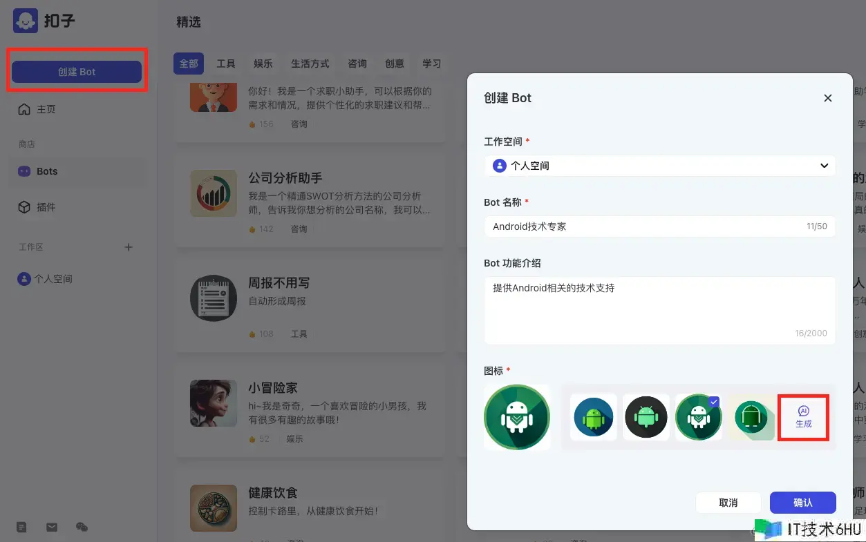 先进入纽扣渠道,然后挑选左上角的“创建Bot”按钮