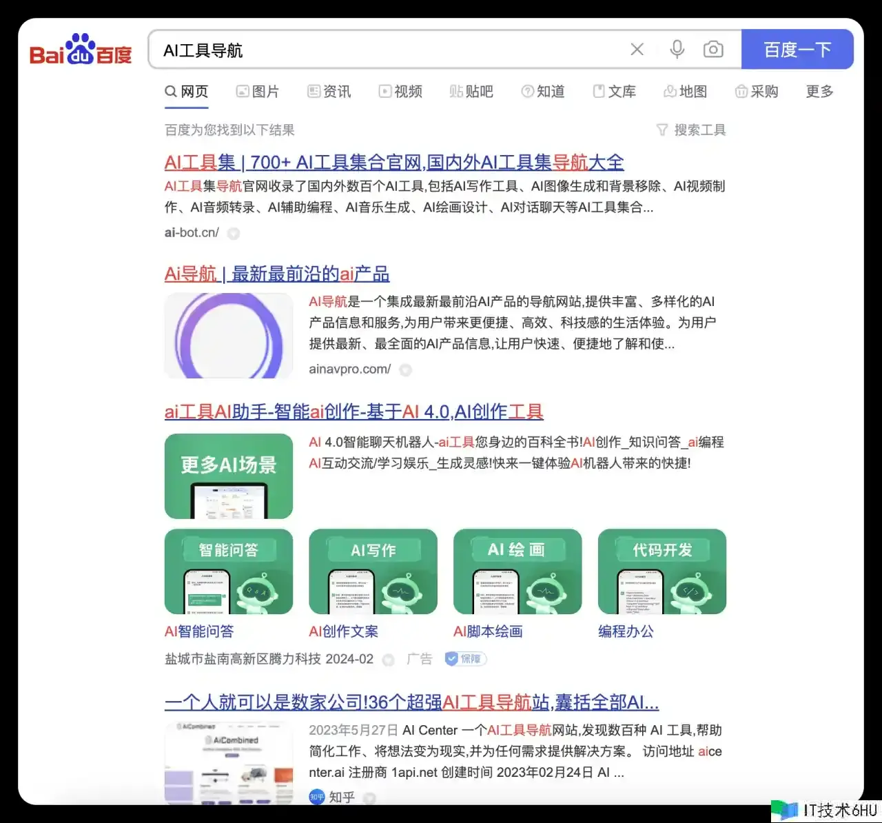 假如你真的想用AI东西,你略微百度一下就能找到一堆。比方你百度搜“AI东西导航”,只需没有广告标识的,点进去大概率都会给你列一堆出AI东西出来。
