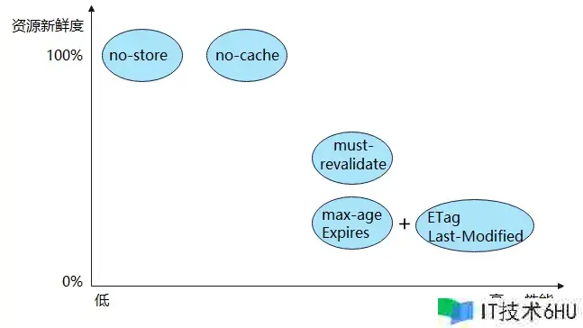 运用http缓存时需求在功能和资源新鲜度之间进行取舍,两者不行兼得,各个指令和功能以及新鲜度的联系如下:
