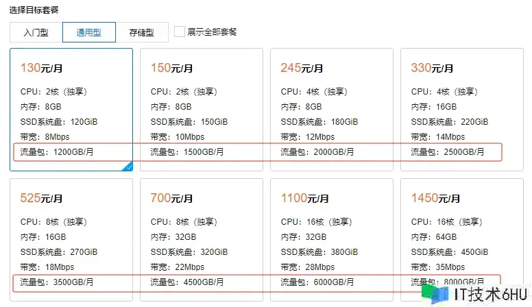 以下是腾讯云服务器套餐,流量和价格成正比: