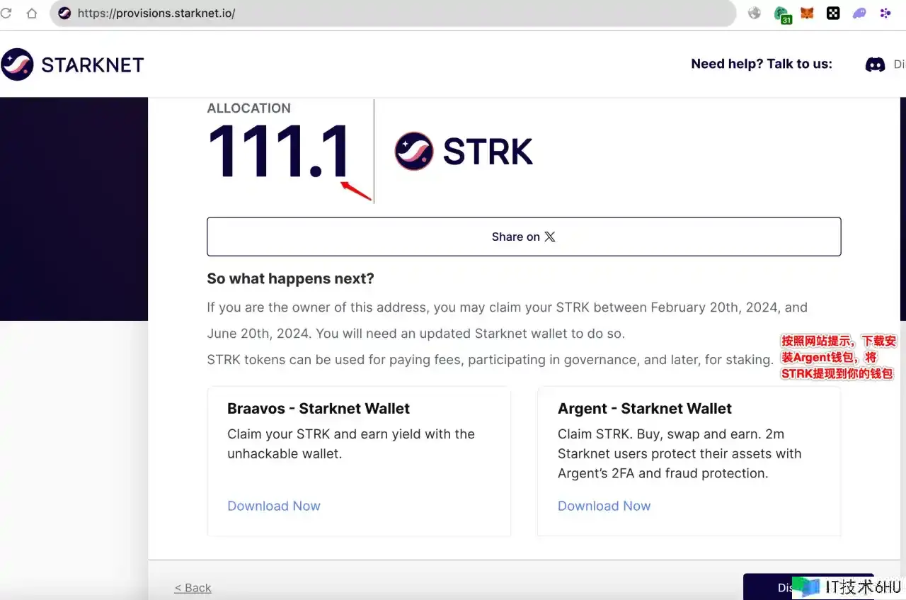 - 依照网站提示,下载安装好Argent Wallet,相关GitHub 账户收取$STRK代币。