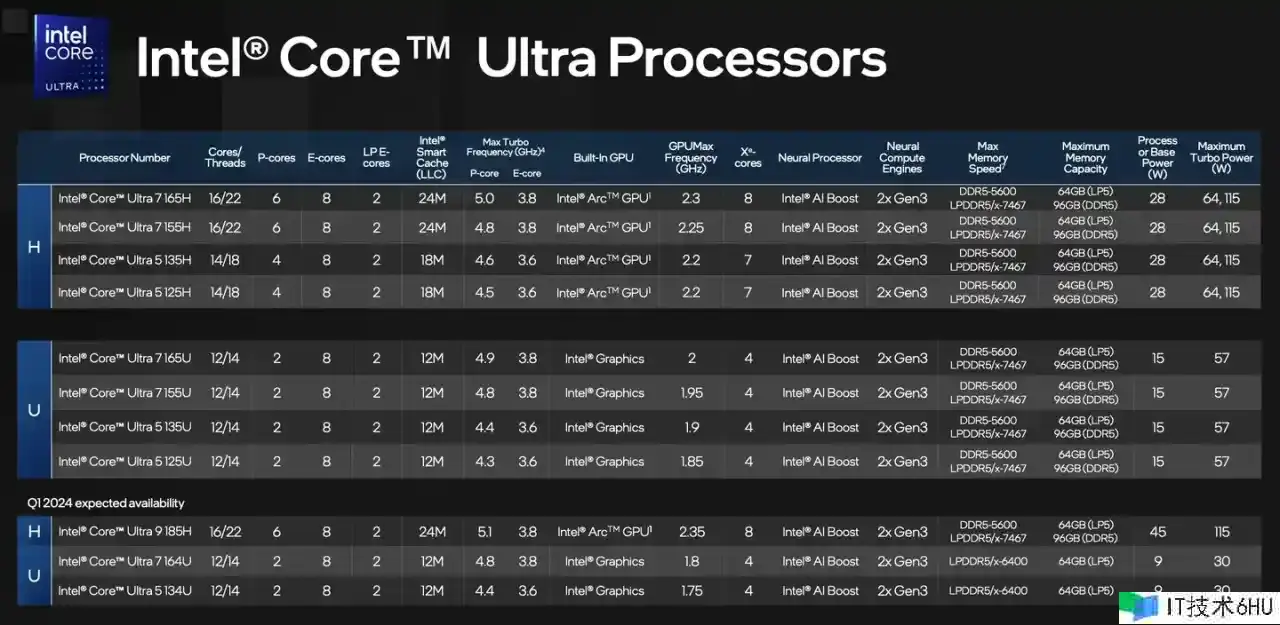 在同一代中,155H还有一些兄弟产品,如定位稍高的165H、185H,定位稍低点的135H、125H等等。也有同一架构不同商场定位的U系列产品,详见下表。我们能够看到并且确认其次旗舰、主推产品的定位。